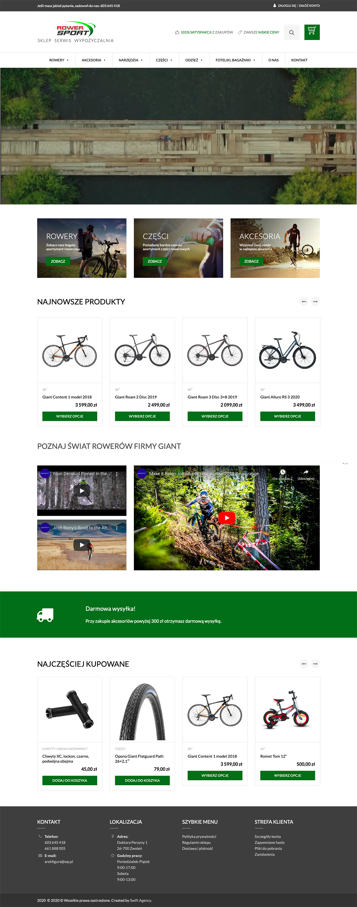 Rowery Zwoleń to firma, która już od ponad 20 lat specjalizuje się w sprzedaży różnego rodzaju rowerów oraz akcesoriów z nimi związanych. Dzięki utworzeniu sklepu internetowego już nikt nie będzie miał wątpliwości, gdzie kupić rower lub części oraz wypożyczyć sprzęt sportowy tj. rowery, narty, bagażniki dachowe i boxy.